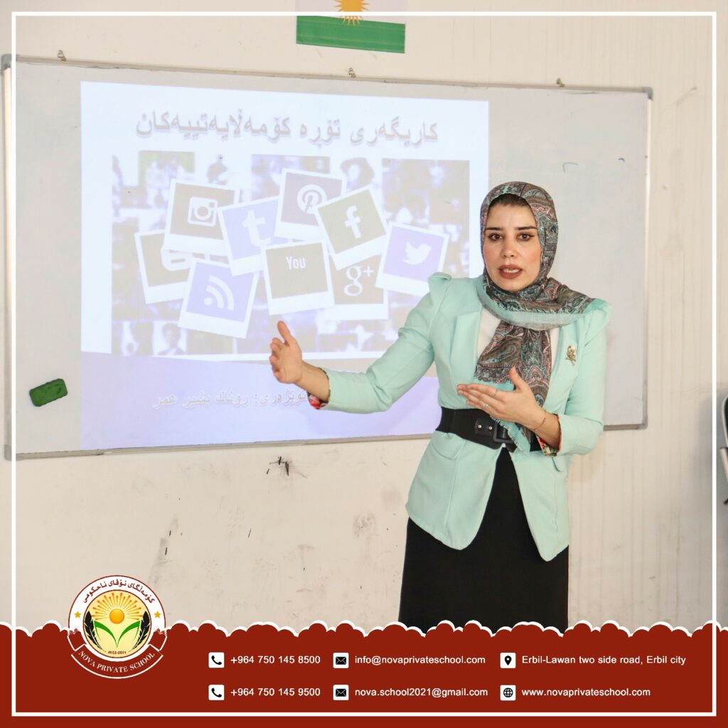 تقديم سمينار من قبل مرشدة التربوية عن تأثير مواقع التواصل الأجتماعي علی الفرد.