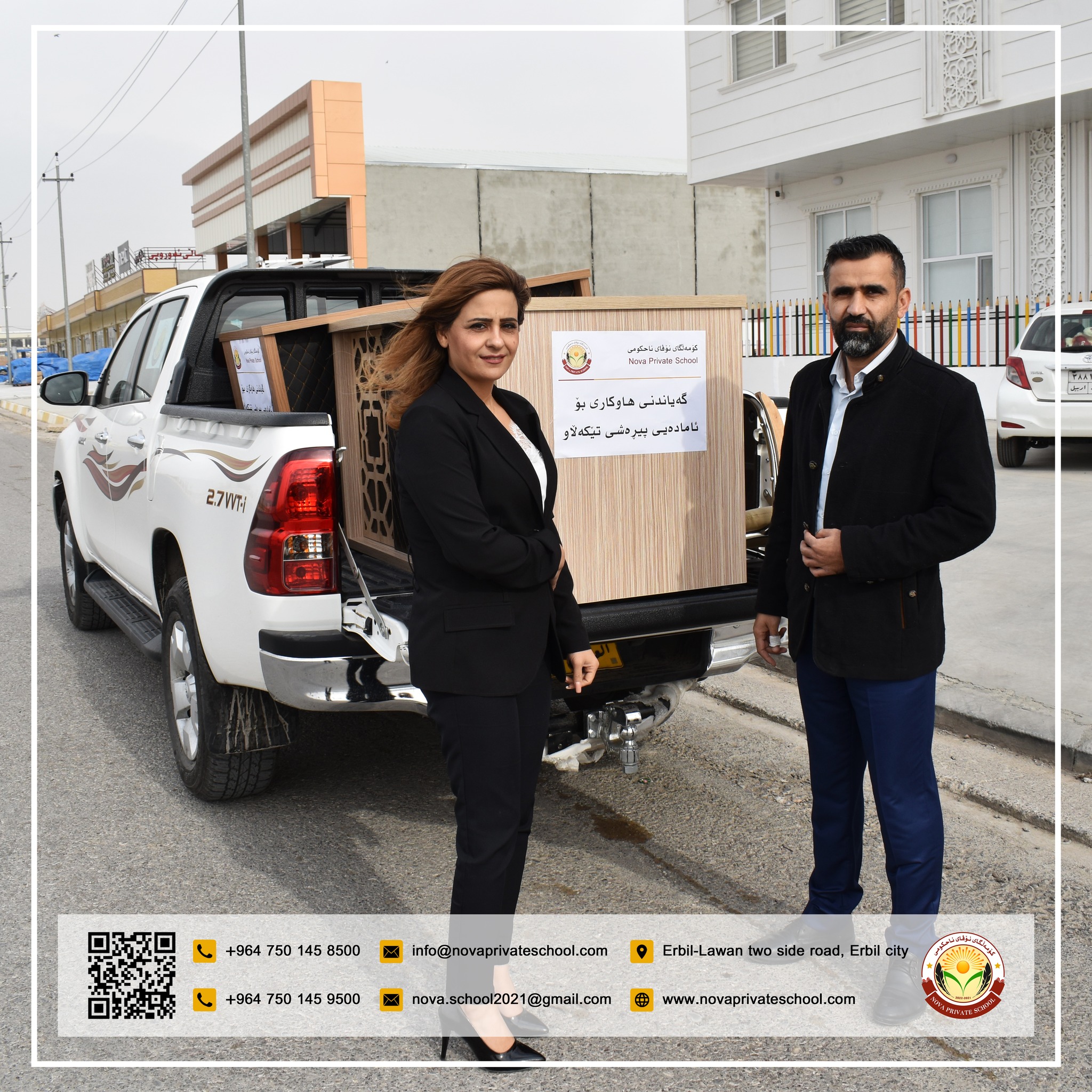 کۆمەڵگاى پەروەردەى نۆڤاى ناحکومى هەڵسا بەدابین کردنى پێداویستى بۆ ئامادەیی پیرەش ى تێکەلاو دواى ئەوەى بەهۆى ئاگرکەوتنەوە لە قوتابخانەکەیان تەواوى قوتابخانە و پێداویستى خوێندن سوتا.وەکو ئەرکێکى نیشتمانى و پەروەردەى خاوەن پرۆژە (سعد رضا عمر) دەستەى کارگێرى کۆمەڵگاى راسپارد بە دابین کردنى پێداویست خوێندن.