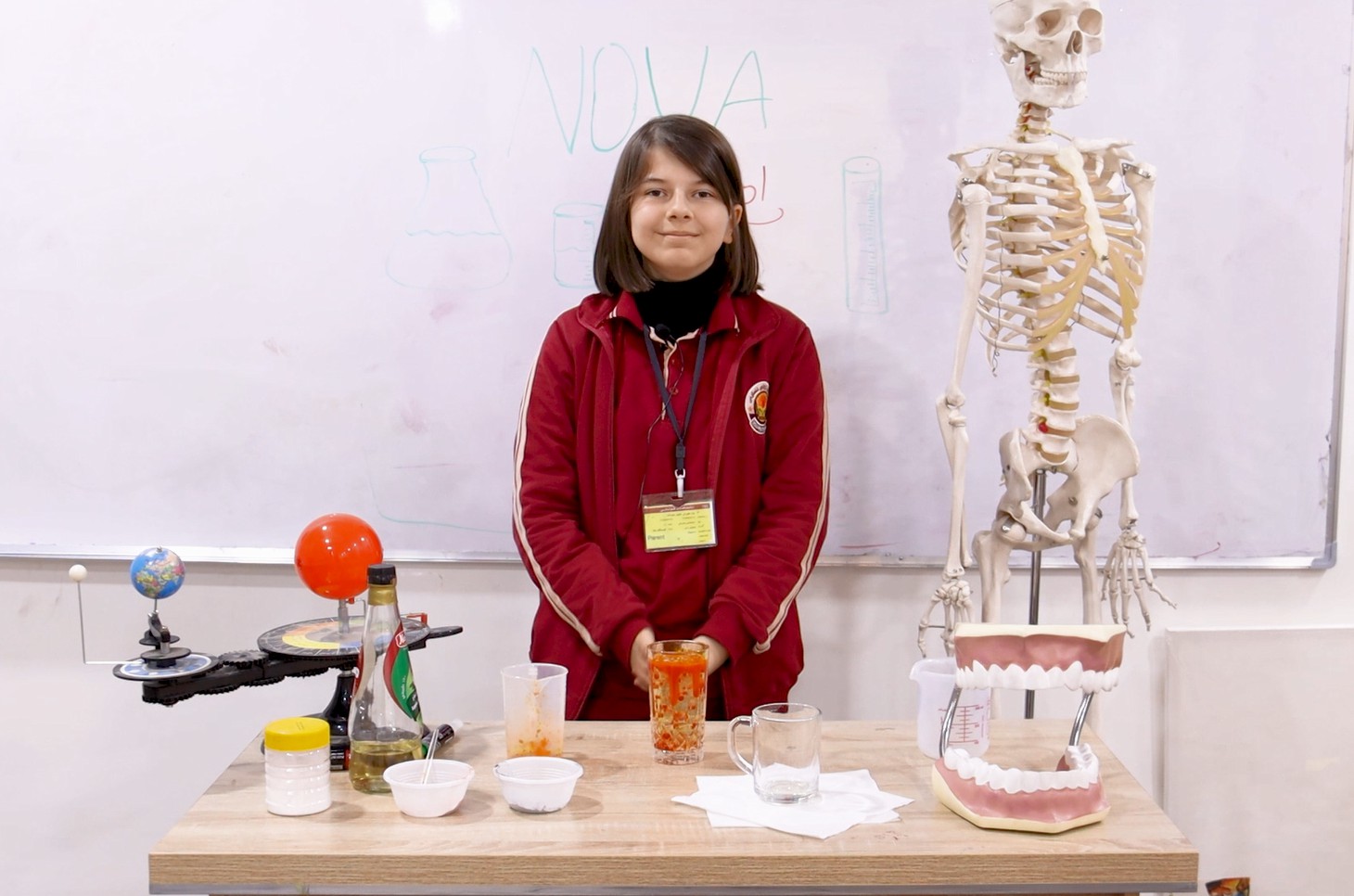ئەنجامدانی تاقیکردنەوەیەکی زانستی لەلایەن قوتابیی پۆلی حەوتەمی قوتابخانەکەمان(یارا هێرش) دەربارەی چۆنیەتی ئەنجامدانی کارلێکی کیمیایی لەنێوان سۆدە و سرکەی سێو کە دەتوانن(lava lamp)درووستبکەن.