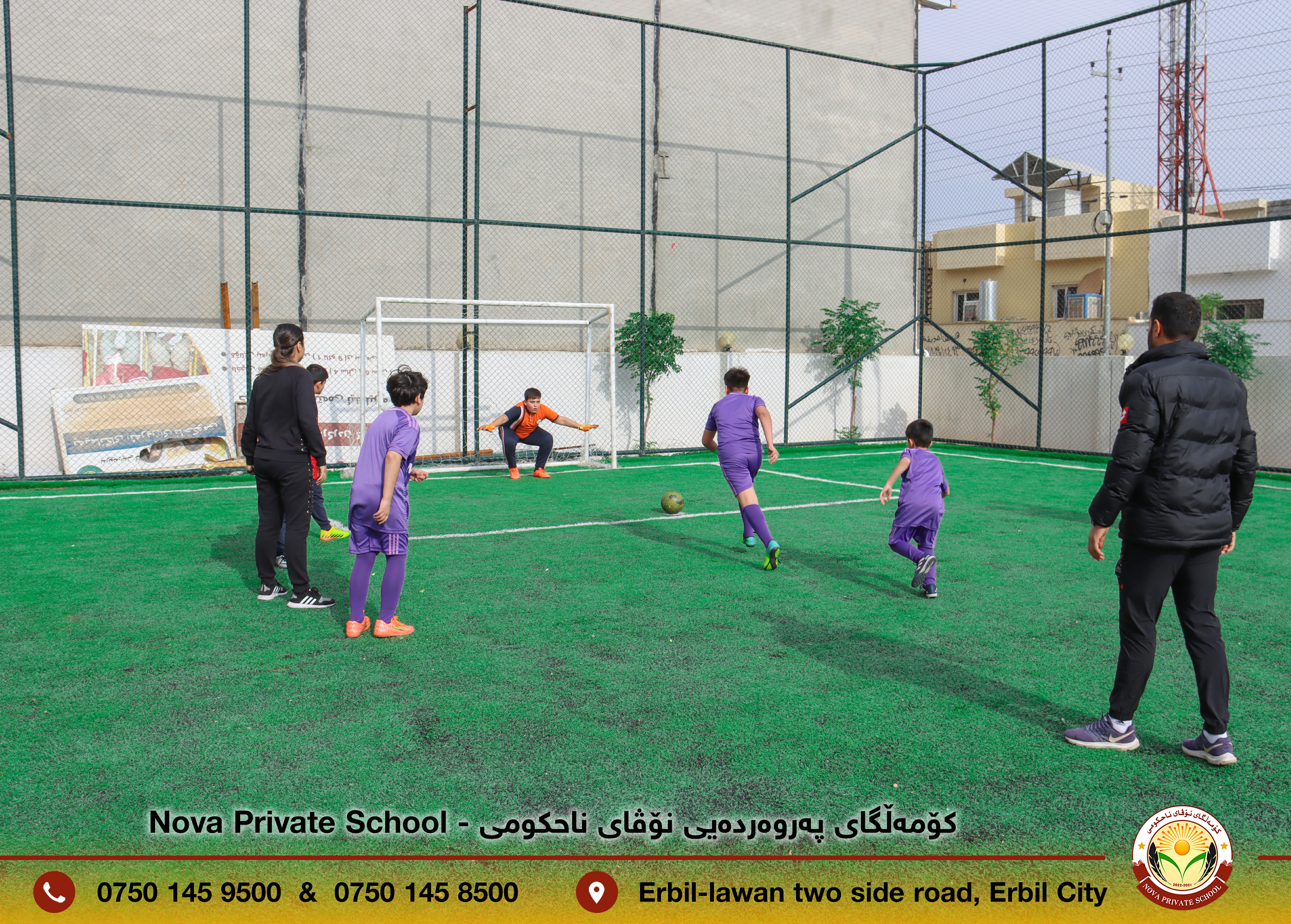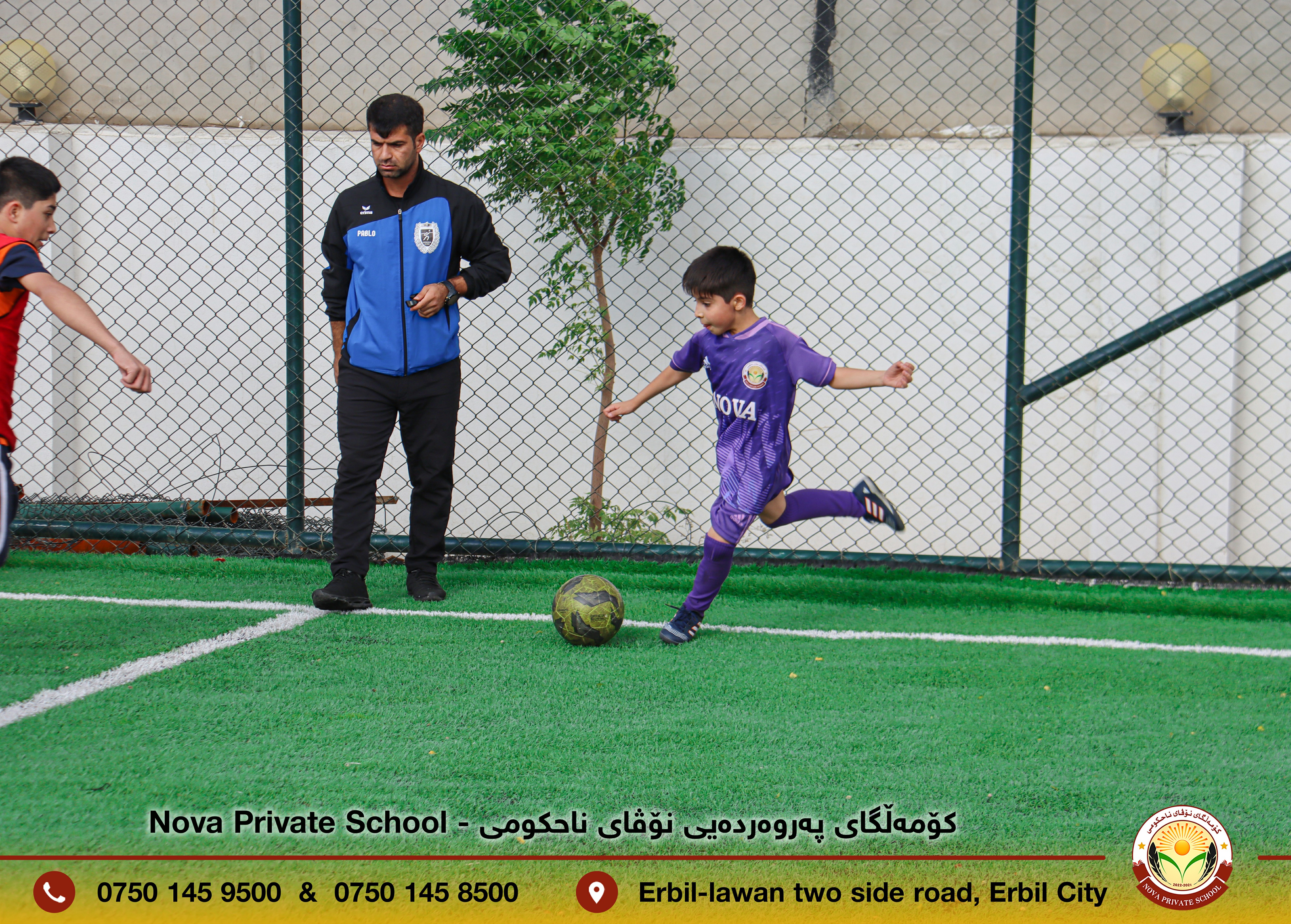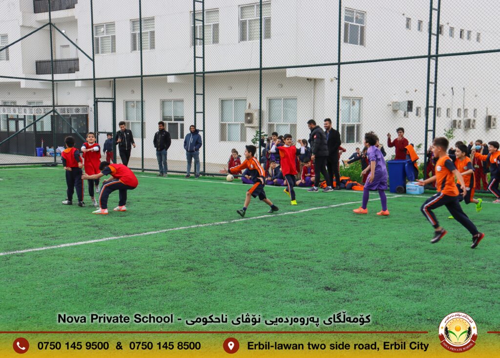 ئەنجامدانی یارییەکی دۆستانە لە نێوان قوتابییانی قوتابخانەی کۆششی ناحکومی و کۆمەڵگای پەروەردەیی نۆڤای ناحکومی لە یاریگای کۆمەڵگای نۆڤا بۆ بەسەربردنی کاتێکی خۆش.