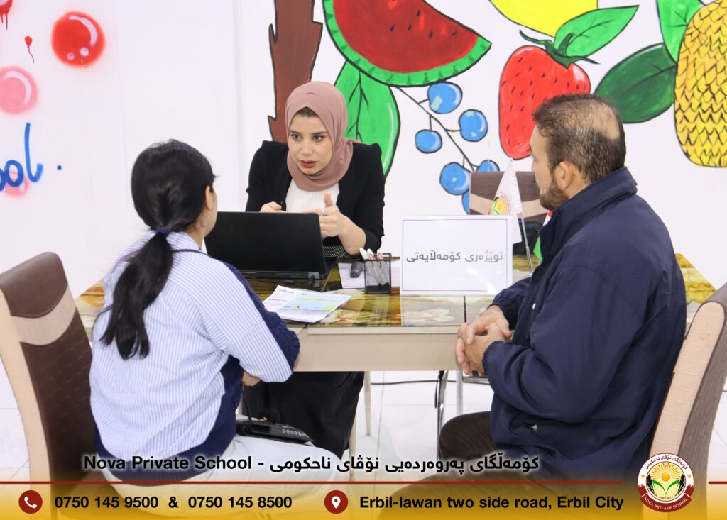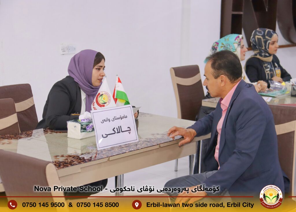 ڕێکخستنی کۆبوونەوەیەک لەنێوان چاودێر و مامۆستایان لەگەڵ دایک و باوکی قوتابییانی باخچەی کۆمەڵگای نۆڤا بەمەبەستی گۆڕێنەوەی سەرنج و تێبینییەکانی نێوان هەردوولا بۆ بەرەوپێشبردنی ئاستی زانستی و پەروەردەیی قوتابییان.