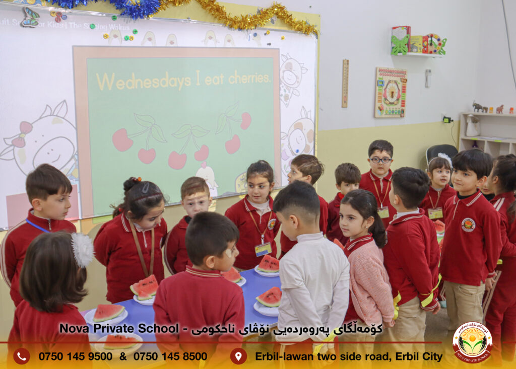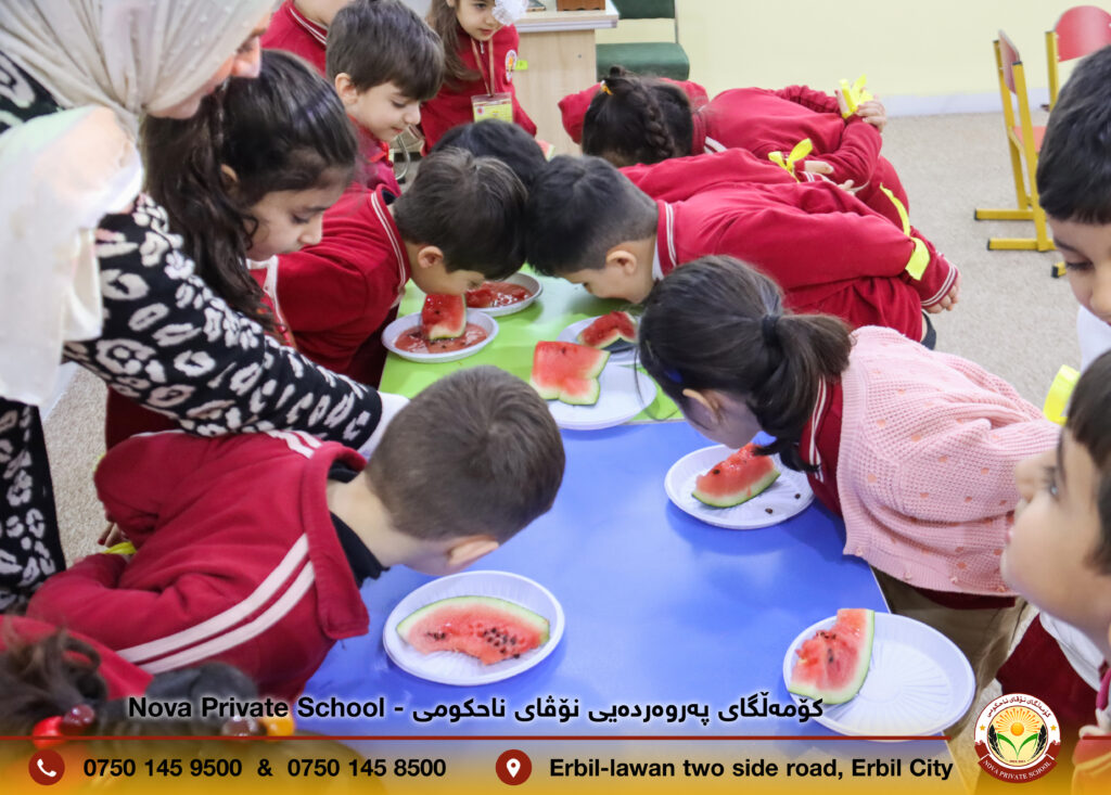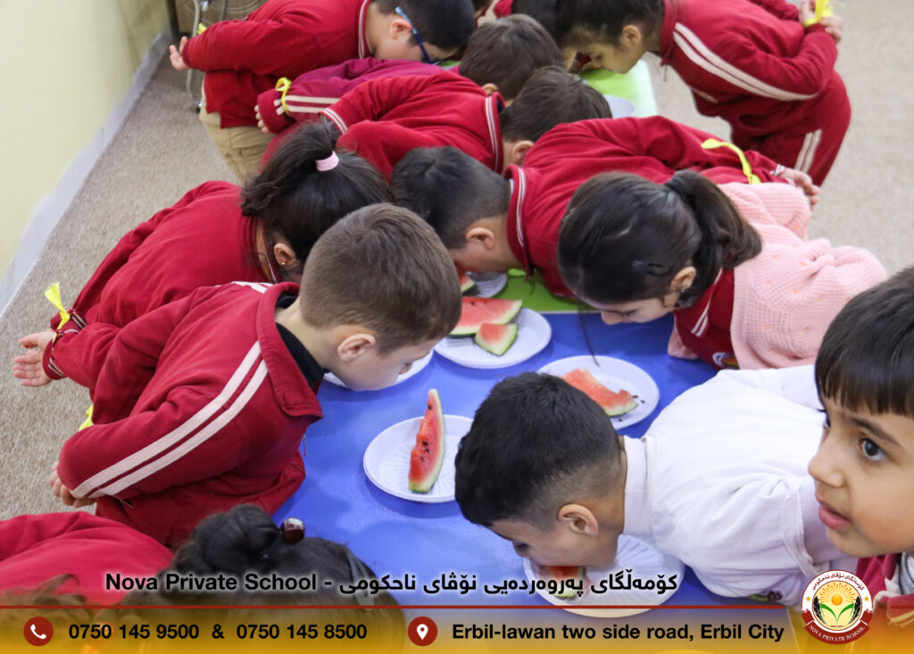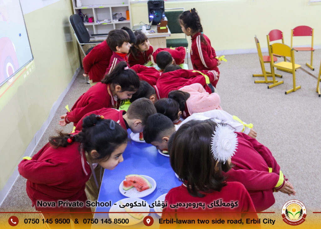 ئەنجامدانی پێشبرکێیەک لە نێوان قوتابییانی باخچە بۆ بەسەربردنی کاتێکی خۆش بۆ قوتابییان.
