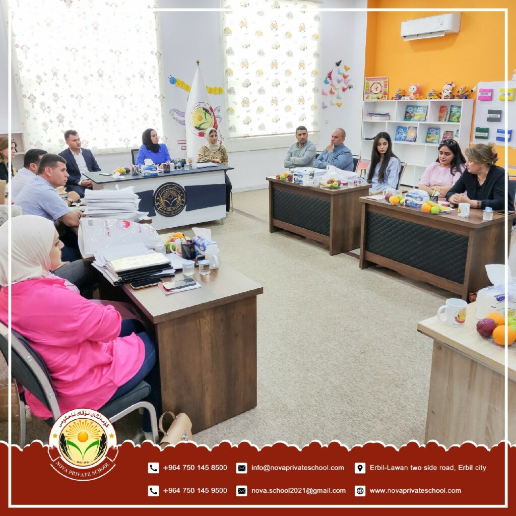 کۆبوونەوەی ستافی ئیداری نۆڤا لەگەڵ یاریدەدەر و مامۆستایانی کۆمەڵگا بۆ ئامادەکاری بۆ کۆبوونەوەی دایک و باوکان کە بڕیارە ڕۆژی شەممە بەڕێوەبچێت.