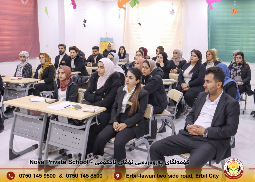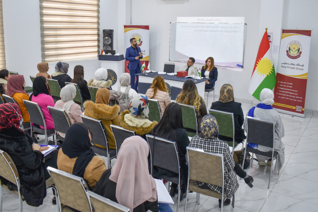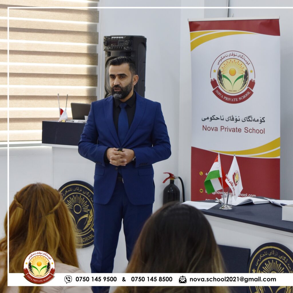 پێشکەشکردنی سیمینارێک دەربارەی (کەناڵهكانی وەرگرتنی زانیاری) بۆ مامۆستایانی کۆمەڵگای نۆڤای ناحوکمی لەلایەن ڕاهێنەری گەشەپێدانی مرۆیی:- پەریخان احمد